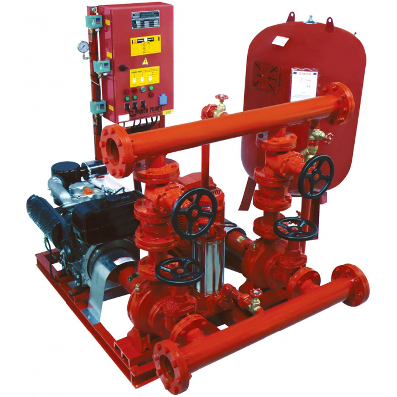 Το μόνιμο υδροδοτικό δίκτυο πυρόσβεσης αποτελεί ένα ακόμη μέτρο ενεργητικής πυροπροστασίας κτιρίων. Τα δίκτυα πυρόσβεσης, ανάλογα με το τι προδιαγράφεται στις μελέτες ενεργητικής πυροπροστασίας, μπορεί να περιλαμβάνουν μόνιμο υδροδοτικό δίκτυο με πυροσβεστικές φωλιές που περιέχουν πυροσβεστικό σωλήνα ή δίκτυο σωληνώσεων που καταλήγουν σε καταιονηστήρες (sprinkler) αυτόματης πυρόσβεσης ή συνδυασμός των ανωτέρω. Αναπόσπαστο μέρος του δικτύου πυρόσβεσης αποτελεί το πυροσβεστικό συγκρότημα. Τα πυροσβεστικά συγκροτήματα κατασκευάζονται σύμφωνα με τις προδιαγραφές της Πυροσβεστικής Υπηρεσίας, τα διεθνή πρότυπα & τις προδιαγραφές της σύγχρονης τεχνολογίας. Παραδίδονται πλήρη, συναρμολογημένα αφού έχουν υποβληθεί σε όλους τους απαραίτητους ελέγχους & ρυθμίσεις, ενώ η εταιρεία μας αναλαμβάνει τη διαδικασία από τη μεταφορά του πυροσβεστικού συγκροτήματος έως την συναρμολόγησή του και σύνδεσή του με το δίκτυο σωληνώσεων και την δοκιμή του.Από το πυροσβεστικό συγκρότημα ξεκινάνε όλες οι σωληνώσεις από τις οποίες διανέμεται το νερό σε όλο το μήκος του δικτύου ώστε να καλύψει ολόκληρο τον πυροπροστατευόμενο χώρο. Το νερό για την πυρόσβεση αποθηκεύεται σε δεξαμενή πυρόσβεσης ή σε γεώτρηση που είναι μονίμως συνδεδεμένη με το πυροσβεστικό συγκρότημα.